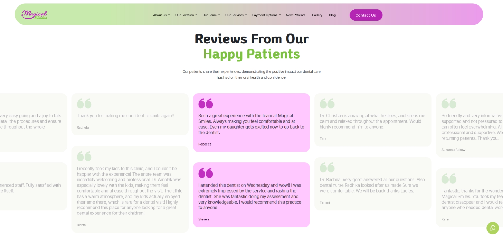 Magical Smiles, a trusted dental practice, wanted to increase its online visibility, drive more organic traffic, and generate high-quality leads through both SEO and paid search campaigns. The goal was to stand out in a highly competitive local market and ensure a steady stream of new patient inquiries.